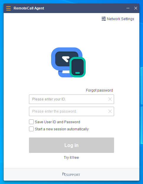 1) Launch the RemoteCall Agent and click the Hamburger menu icon (settings).