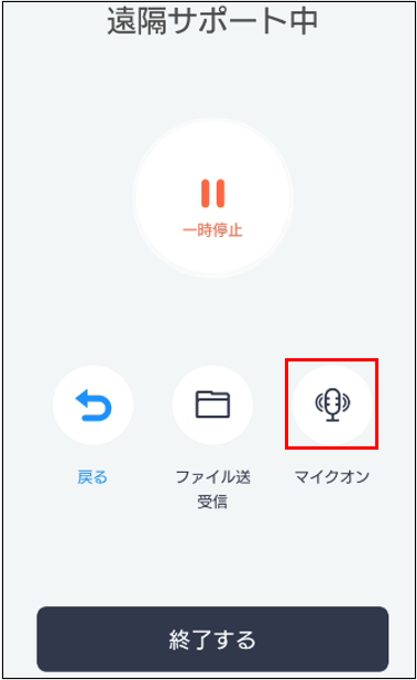 サポート開始後、上段バーのマイクアイコンをクリックすると音声チャットが開始されます。