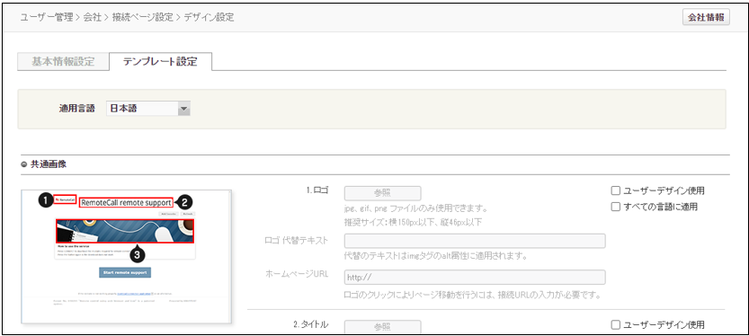 ②会社>接続ページ>テンプレート設定