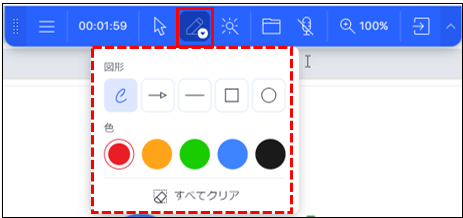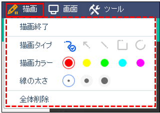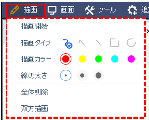 顧客との接続後、上部メニューバーからペンマークの「描画」を選択、