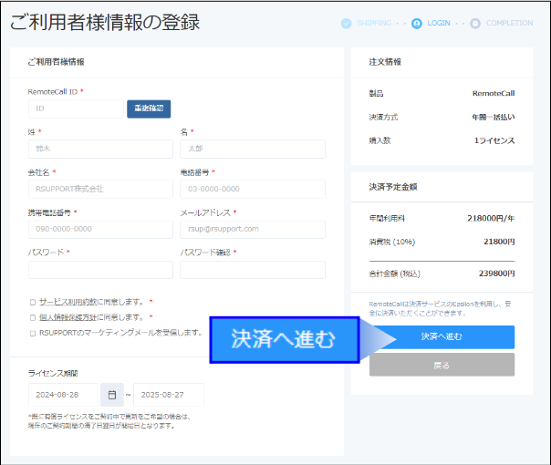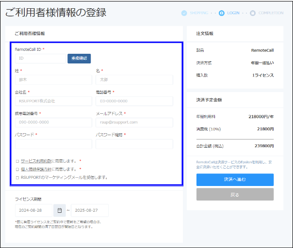 ・「既存アカウントで購入する」を選択した場合はご登録情報が自動反映されます。