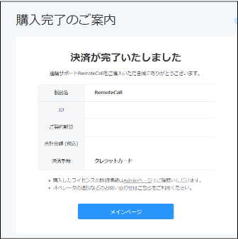 決済完了のページが表示されれば、正常に処理が完了しております。