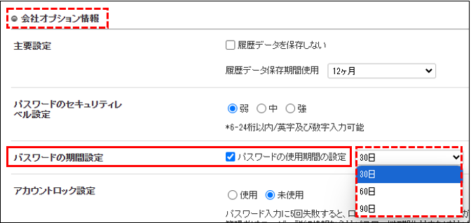 パスワードの使用期間を設定することで設定した周期ごとにパスワードを変更させ