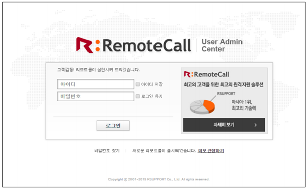 * PW : 제품 구입시 파트너 또는 본인이 지정한 RemoteCall Agent 로그인시 비밀번호